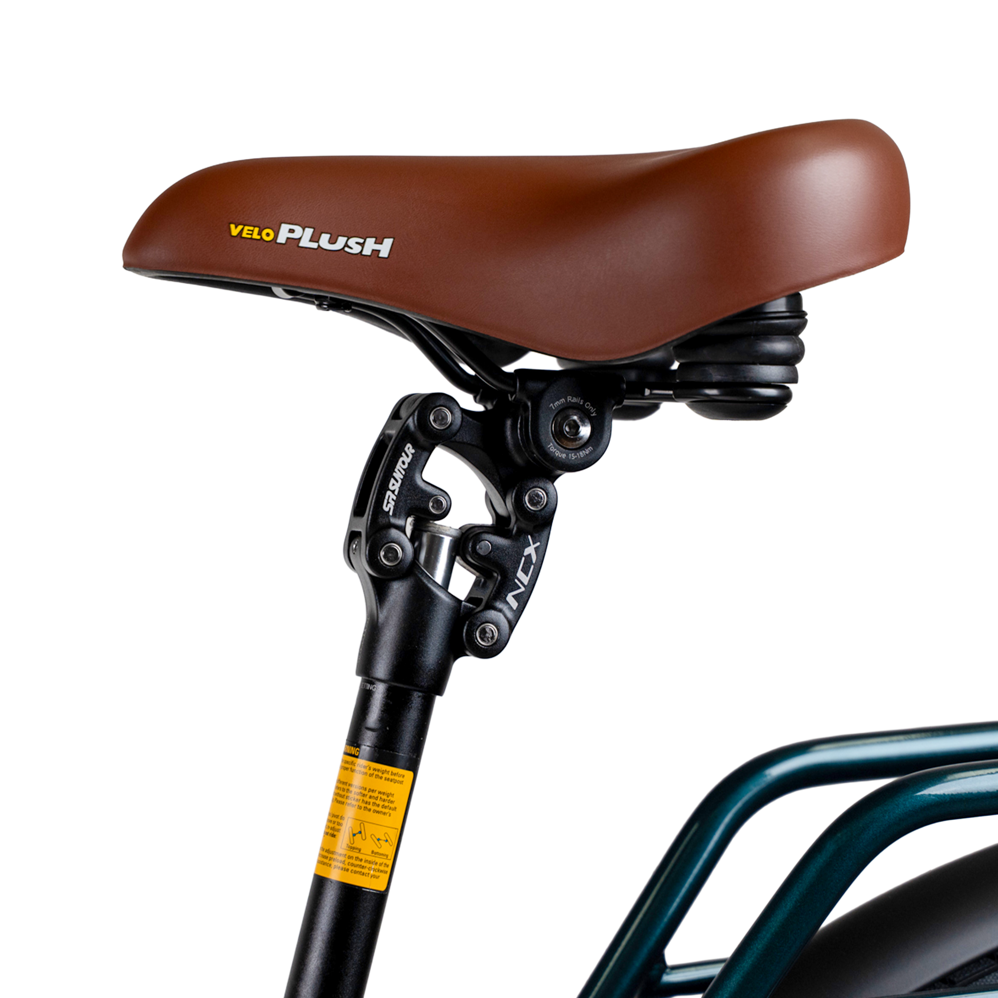 Our Velo Plush saddle and SR Suntour NCX suspension seatpost work together to cushion every bump, so even long rides stay easy on your body.